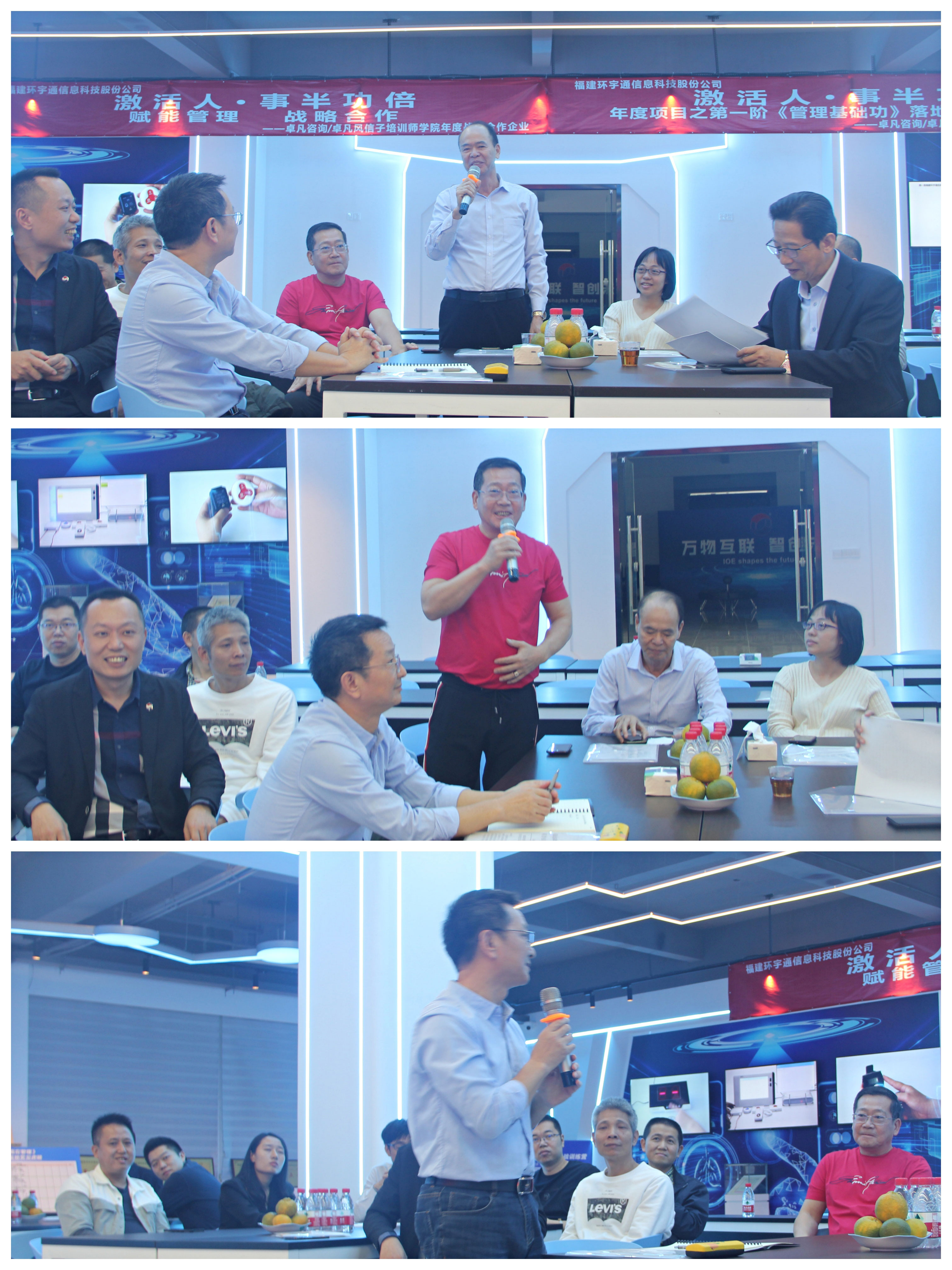 作為常務副會長單位,福建環(huán)宇通信息科技股份公司歷來備受行業(yè)、協會的高度關注。活動伊始,大家在謝建華董事長引領下先參觀了環(huán)宇通公司一樓產品展示體驗廳;隨后齊聚一樓展示廳舉行座談交流會。