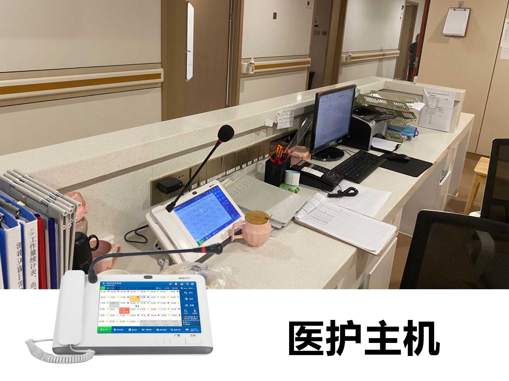 我司自主研發(fā)的“美一”智慧醫(yī)院相關(guān)智能化系統(tǒng),包括信息發(fā)布、取藥叫號、分診排隊、醫(yī)護對講、ICU探視、醫(yī)患求助、無線呼叫等(點擊查看解決方案),為醫(yī)院、養(yǎng)老院、福利院提供智能化解決方案,可為用戶免除多品牌電子產(chǎn)品的繁瑣對接等問題。系統(tǒng)基于我司自主研發(fā)的沃爾卡智慧物聯(lián)網(wǎng)平臺,支持多類型設(shè)備接入,兼容現(xiàn)有各類傳輸網(wǎng)絡,能夠與醫(yī)院的HIS系統(tǒng)無縫銜接,數(shù)字傳輸、方便快捷。