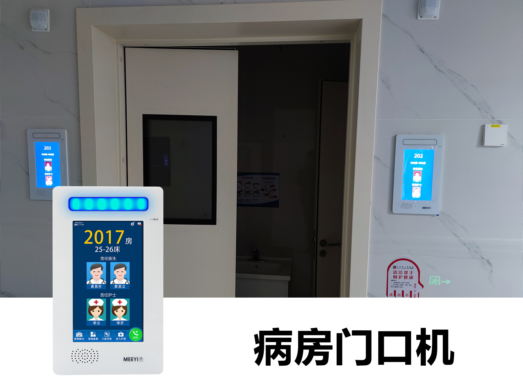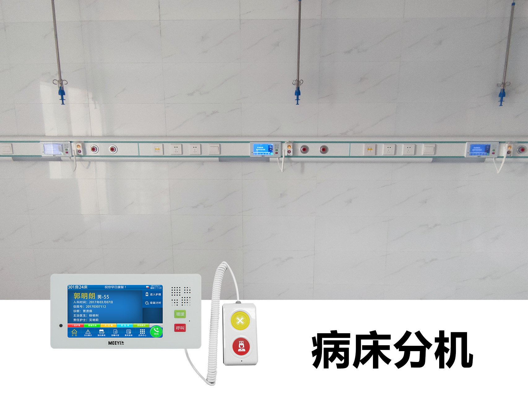 此次沙洋縣人民醫(yī)院智能化改造采用了我司自主研發(fā)的“MEEYI美一”智慧醫(yī)養(yǎng)綜合解決方案中的醫(yī)護對講系統(tǒng)。通過該方案具備: