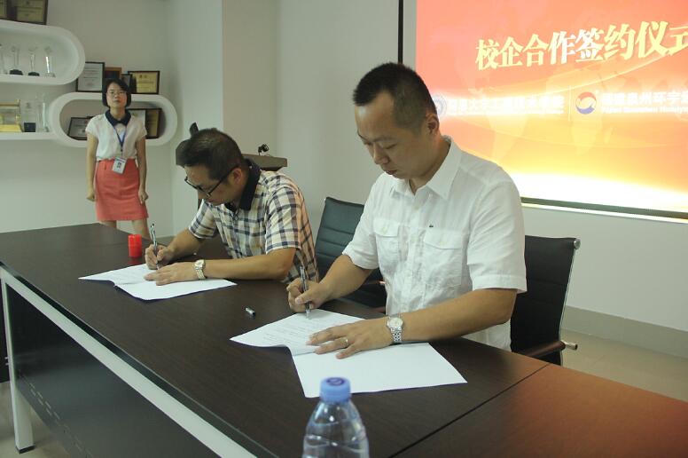 魏雄凌先生與金承勇先生分別代表環(huán)宇通公司和仰恩大學(xué)工程技術(shù)學(xué)院簽署校企合作協(xié)議