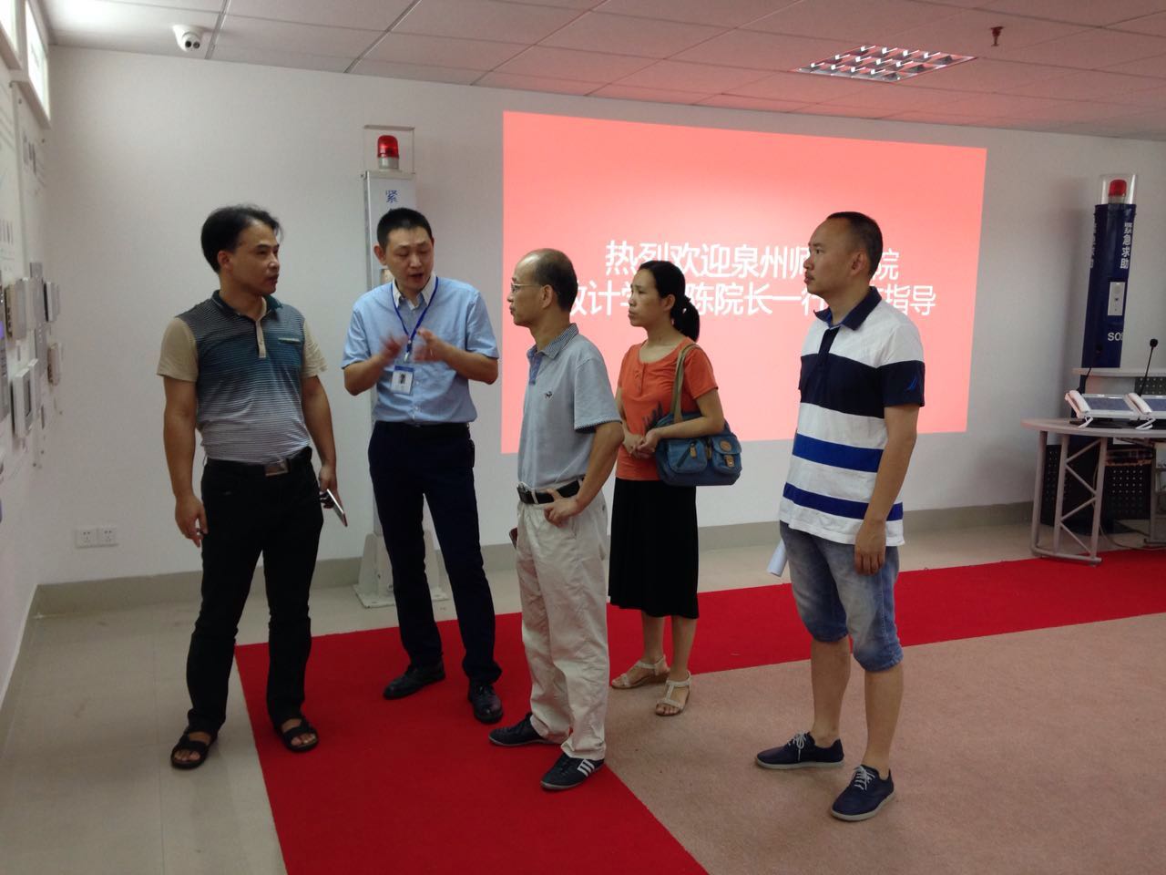 泉州師院陳明玉院長(zhǎng)等領(lǐng)導(dǎo)和老師認(rèn)真聽(tīng)取環(huán)宇通公司介紹相關(guān)產(chǎn)品